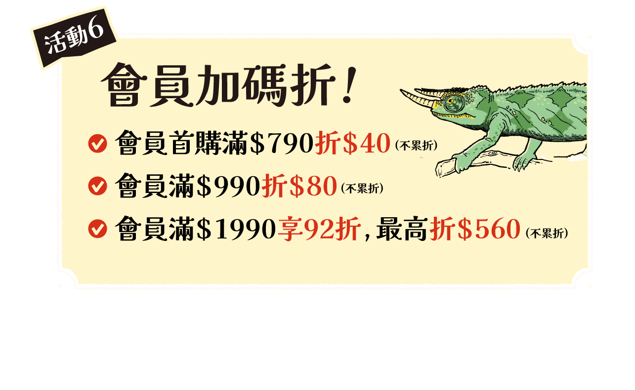 • 🎉【會員首購】$790折$40🎉【滿額折】$990折$80