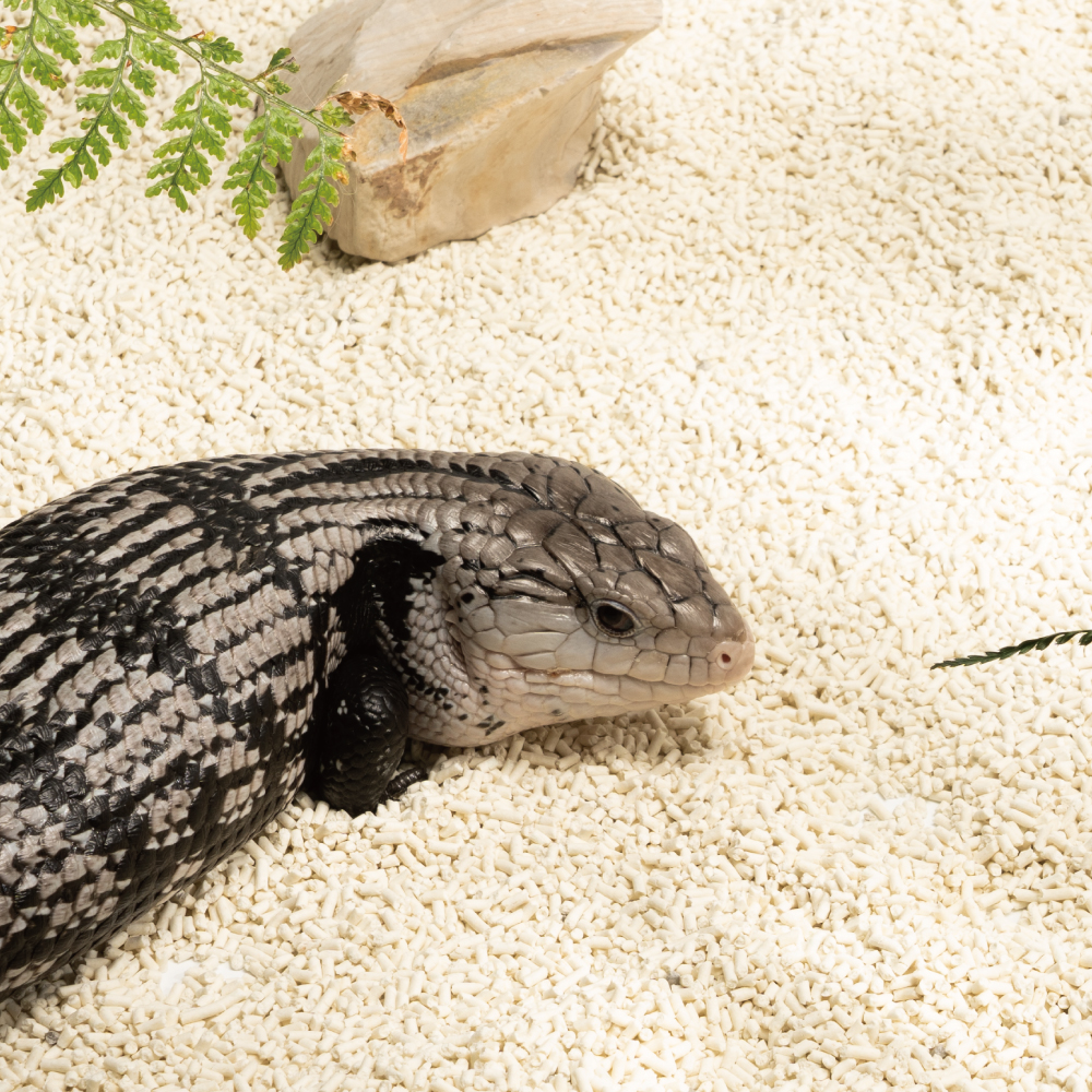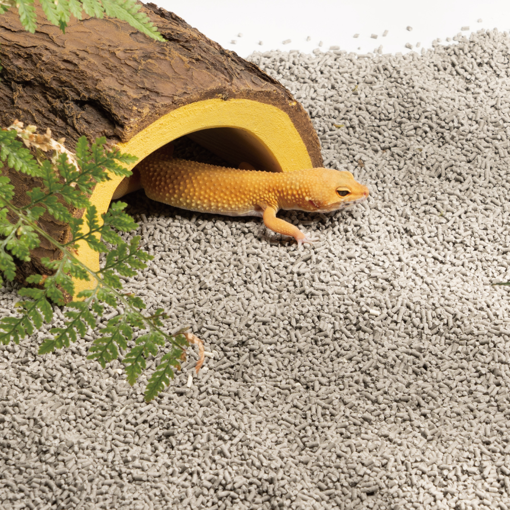 鋪於飼養環境,厚度約一公分,可置於加溫區,遇水崩解所以無法噴濕、加水